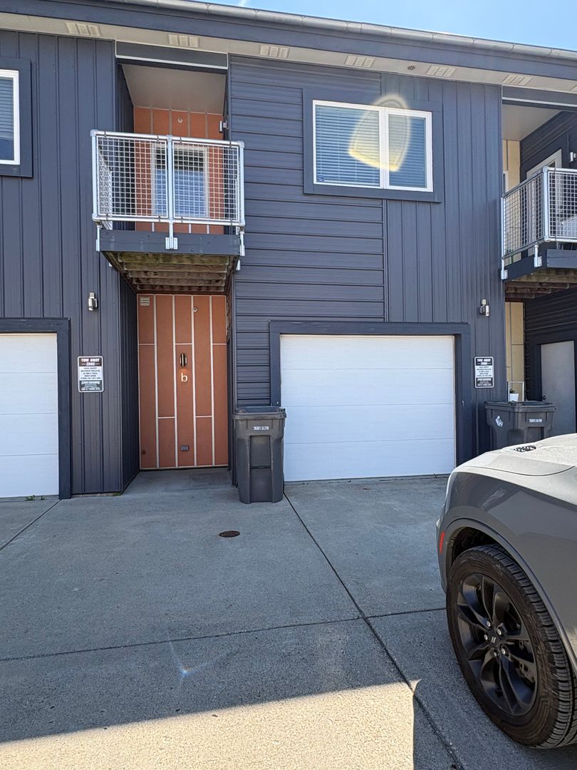 The layout includes an attached garage for convenient parking and storage. Inside, you’ll find washer and dryer hookups, along with a fully equipped kitchen that includes a stove, refrigerator, and dishwasher. Beautiful ceiling light creating a bright and inviting atmosphere.
